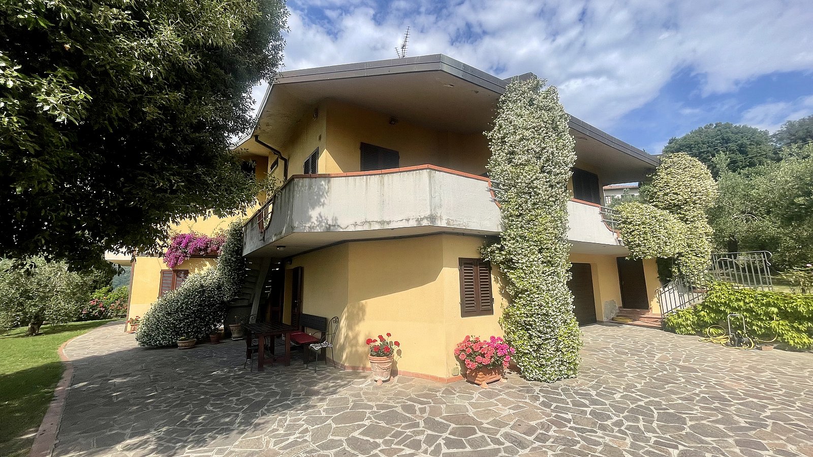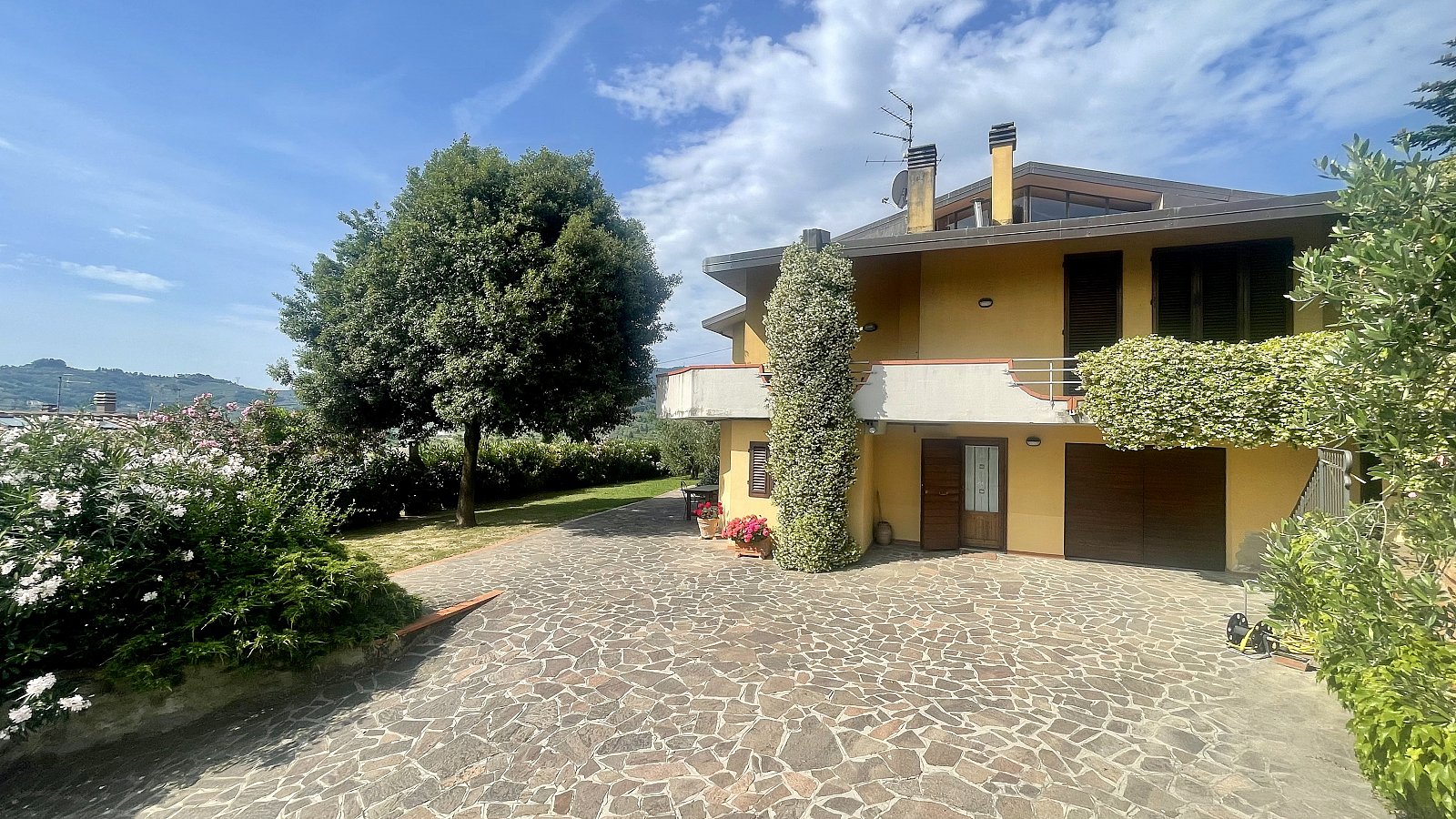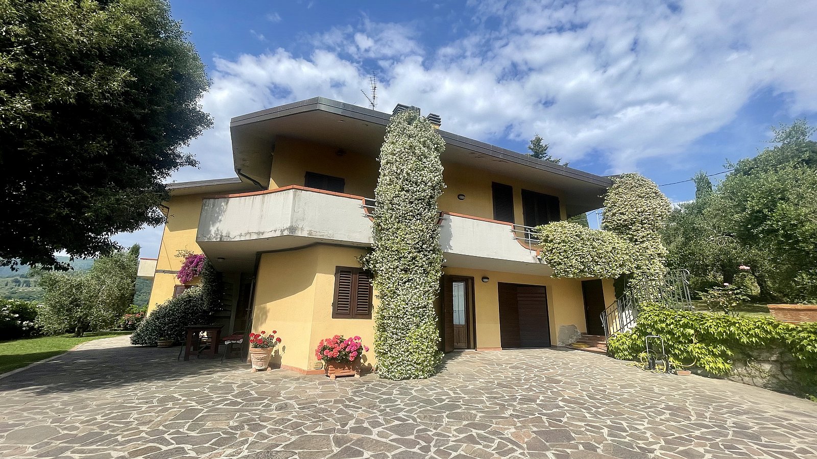 TIZZANA Via del Pozzo 110/112, in una posizione fantastica di mezza collina con vista panoramica fino al Duomo di Firenze, grande VILLA libera sui quattro lati di circa MQ 530 complessivi, circondata dal bel giardino/resede esclusivo di MQ 700. L'immobile BIFAMILIARE è posto su due livelli oltre al piano mansardato sottotetto: al piano terra troviamo un APPARTAMENTO indipendente (collegato internamente con la villa) di MQ 115 con ingresso, disimpegno, cucina abitabile con camino, soggiorno, due camere e due bagni, oltre al GARAGE e alla CANTINA di MQ 85; al primo piano, con accesso dalla scala esterna, il GRANDE APPARTAMENTO di MQ 215 con ingresso, ampio soggiorno con focolare e doppio volume, cucina abitabile, disimpegno, due camere matrimoniali, due camere medie e due bagni; al piano sottotetto di MQ 115, disimpegno, quattro vani utilizati come MANSARDA e bagno. La villa si presenta in ottime condizioni ed è la soluzione ideale per chi cerca una residenza importante, ma con la possibilità di avere un'abitazione indipendente al piano terra per i genitori o per i figli.